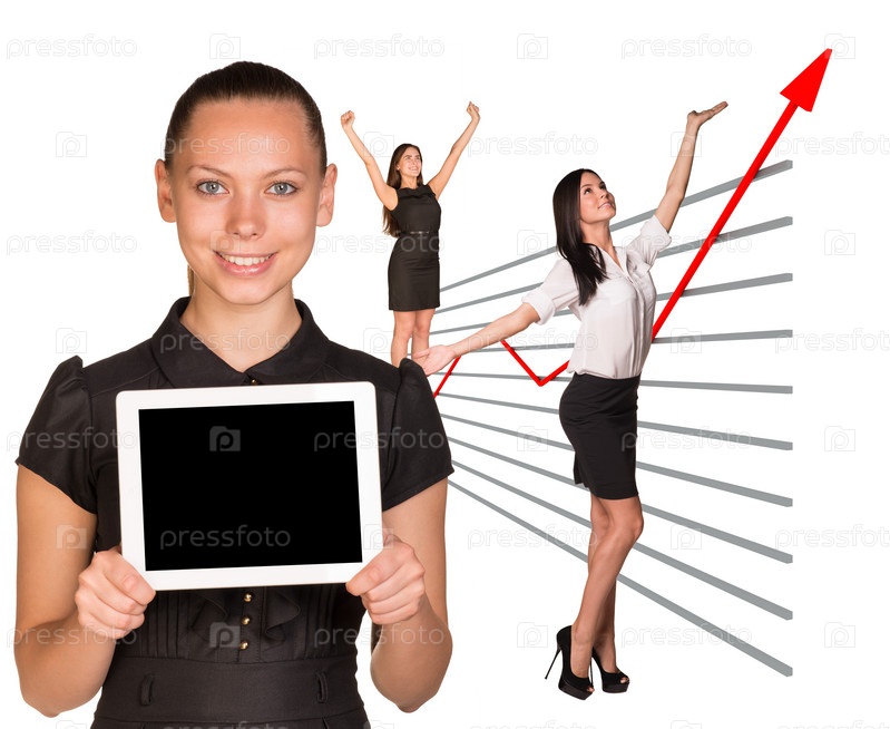 Счастливый деловых женщин и графический индикаторы
