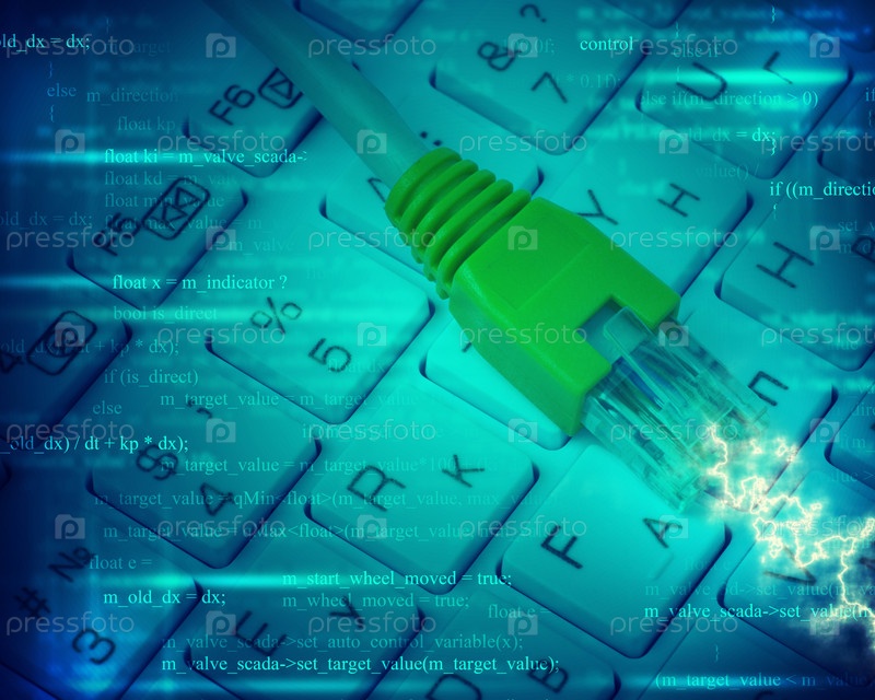 Компьютерный кабель на клавиатуре