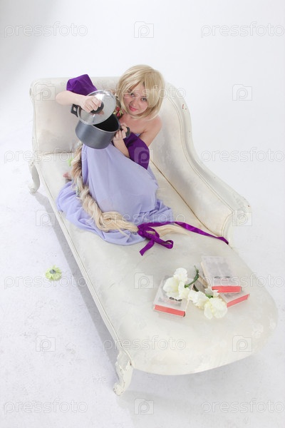 Блондинка принцесса с кастрюлей