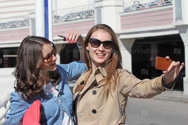 Туристы фотографируются на мобильный телефон