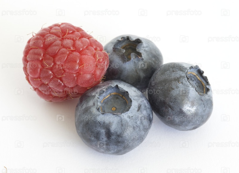 Черника и малина на белом фоне