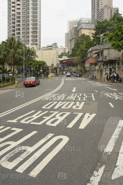 Надпись на проезжей части городской улицы