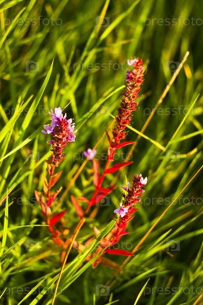 Полевой цветок на фоне зеленой травы