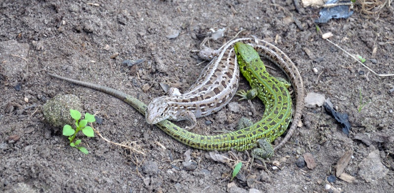 Две небольшие ящерицы с длинными хвостами