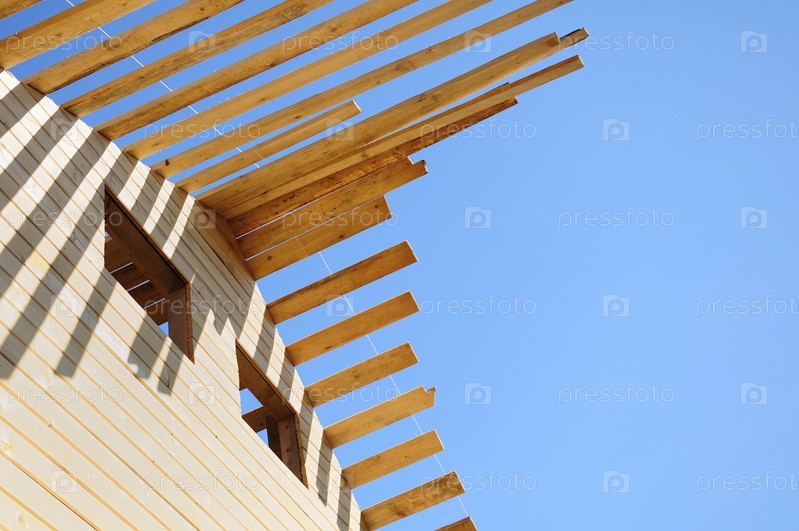 Незаконченная деревянная крыша под небом