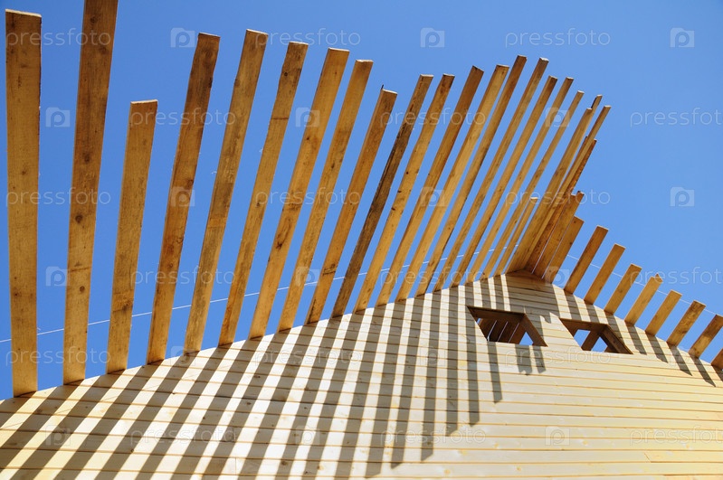 Незаконченная деревянная крыша под небом