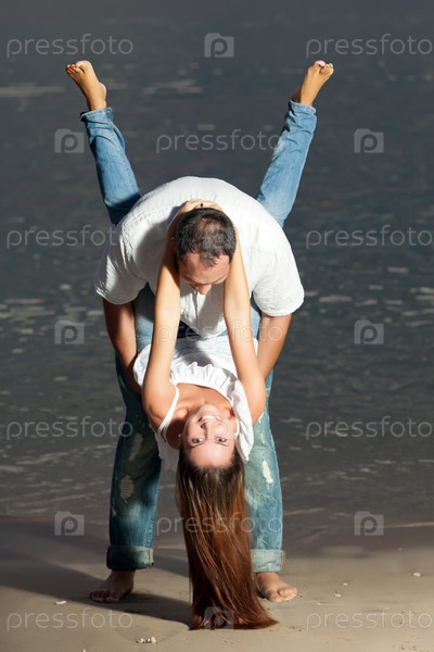 Молодая влюбленная пара на пляже