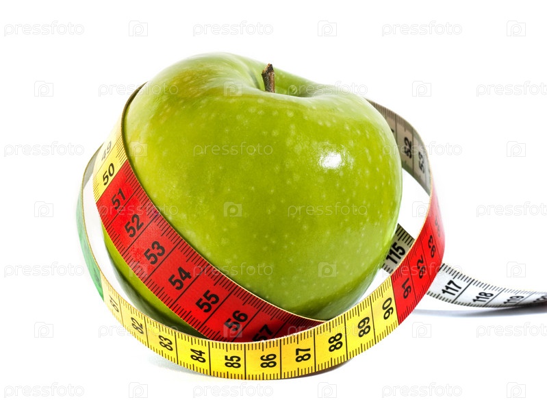 Зеленое яблоко с измерительной лентой