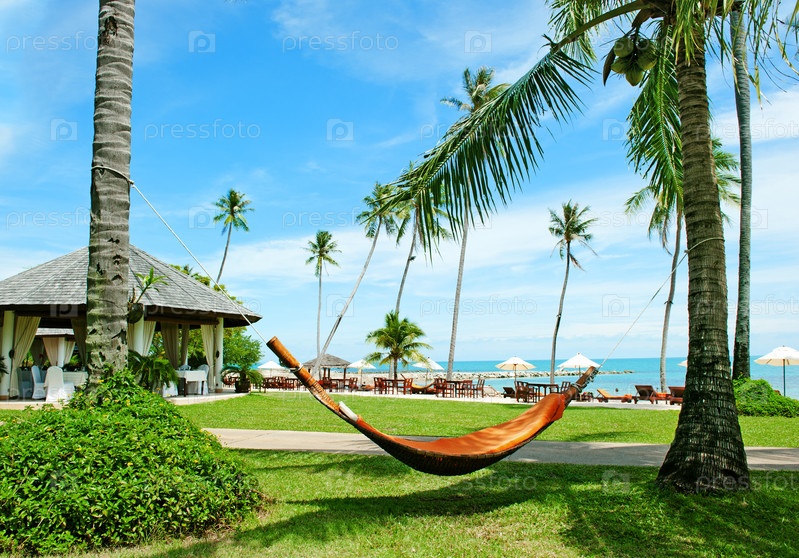 Гамак, натянутый между двумя пальмами