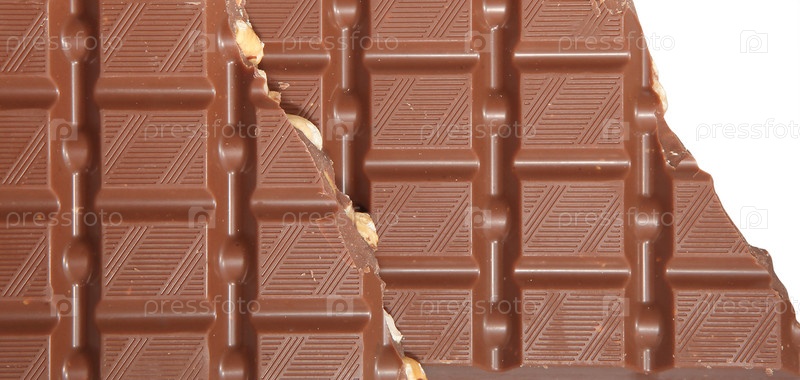 Сломанная плитка молочного шоколада с орехами
