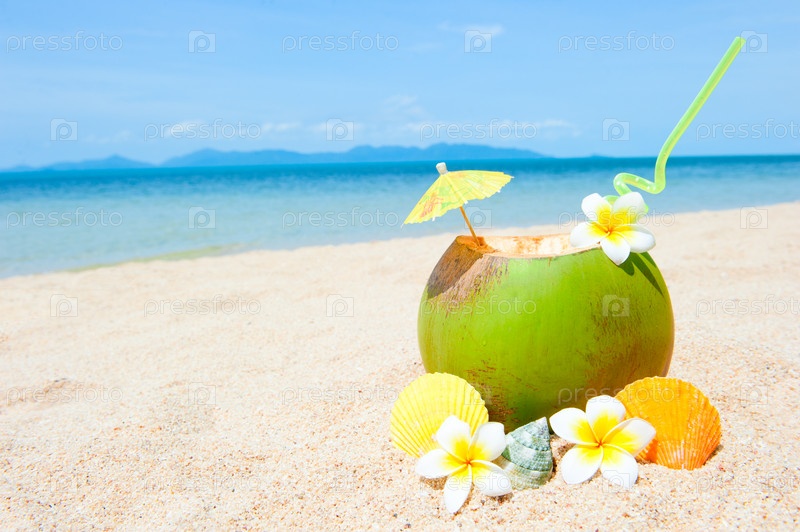 Экзотический коктейль на морском пляже