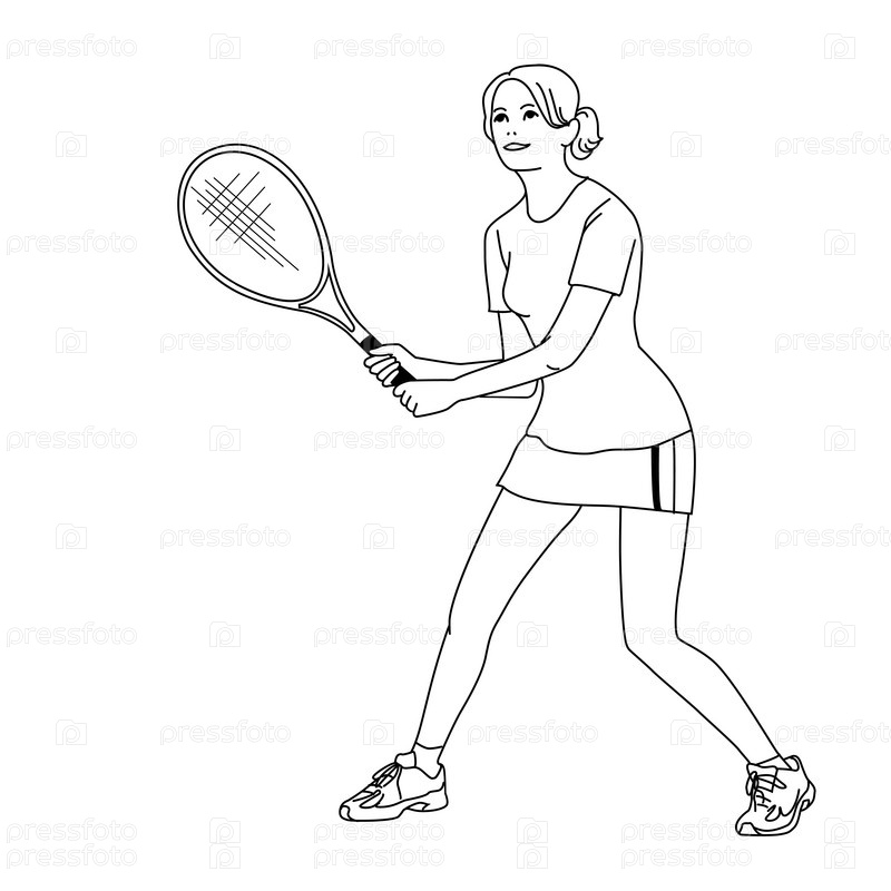 Девочка, играя в теннис