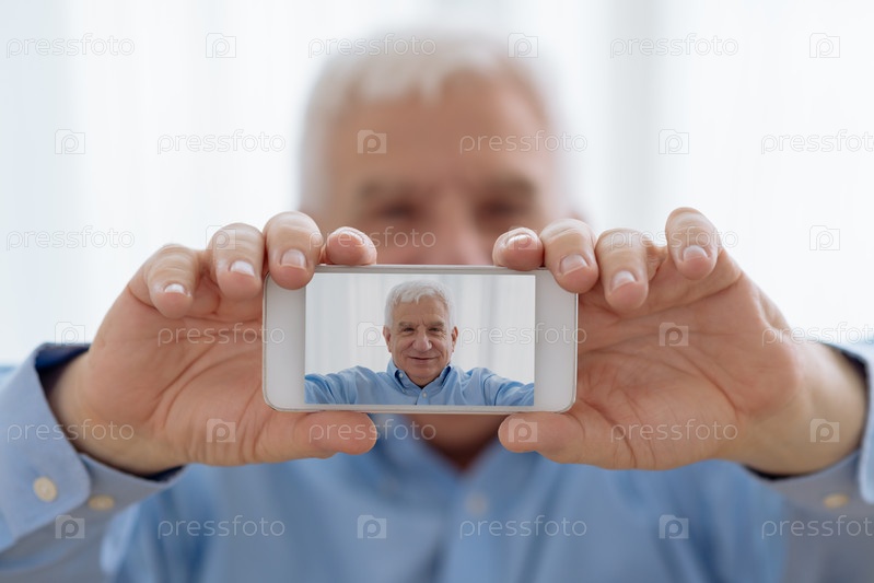 Пожилой мужчина делает селфи