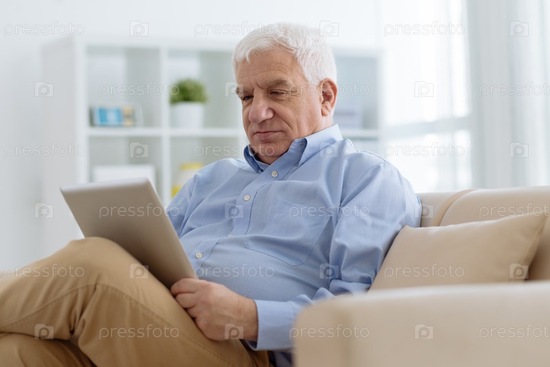 Пожилой мужчина с цифровым планшетом