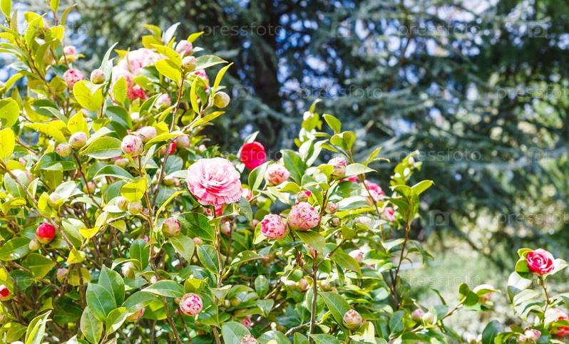 Розовые и белые цветы камелии