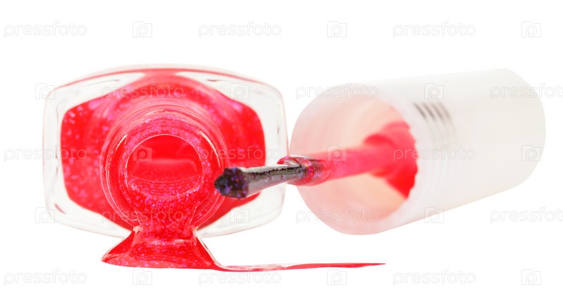 Бутылка с разлитым розовым лаком
