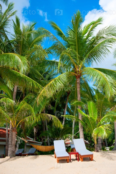 Шезлонги на тропическом пляже