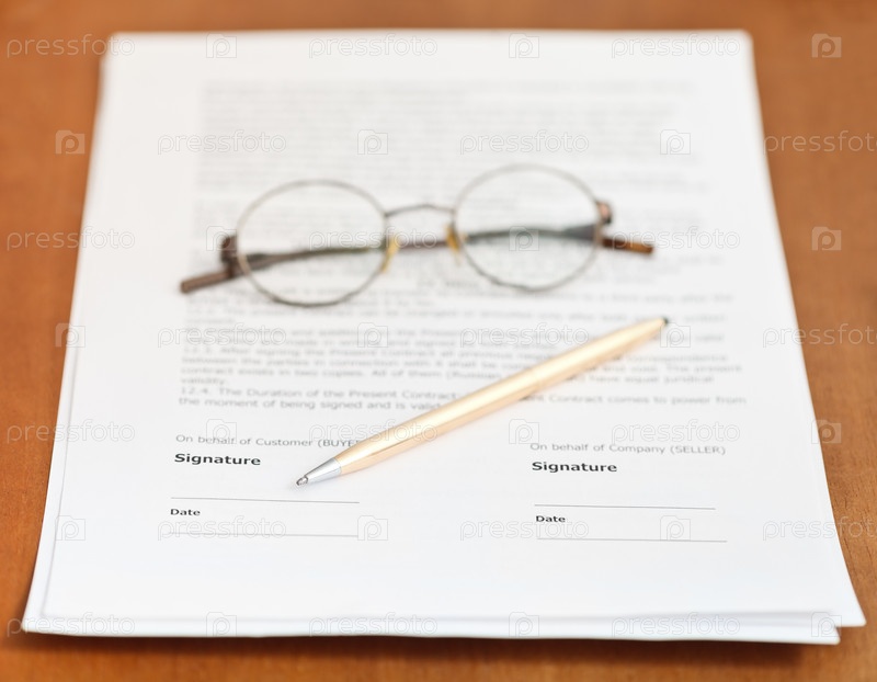 Контракт, ручка и очки