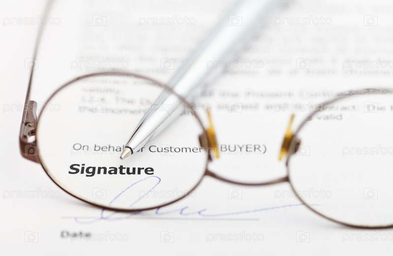 Контракт, ручка и очки