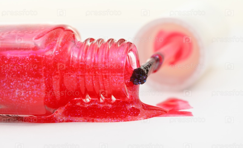 Бутылка с разлитым розовым лаком