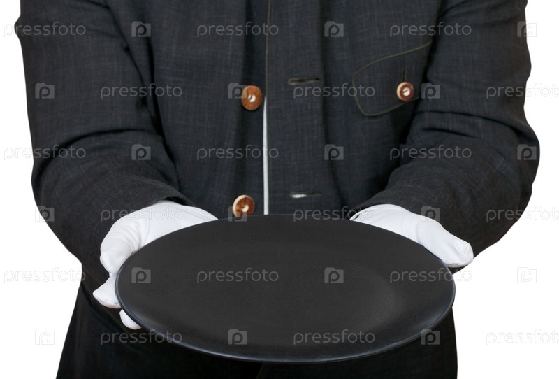 Руки в перчаткахх с тарелкой