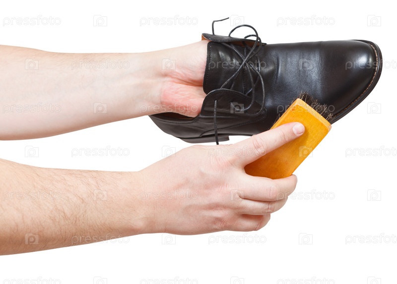 Очистка черной обуви щеткой