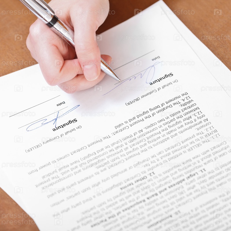Рука ставит подпись на договоре