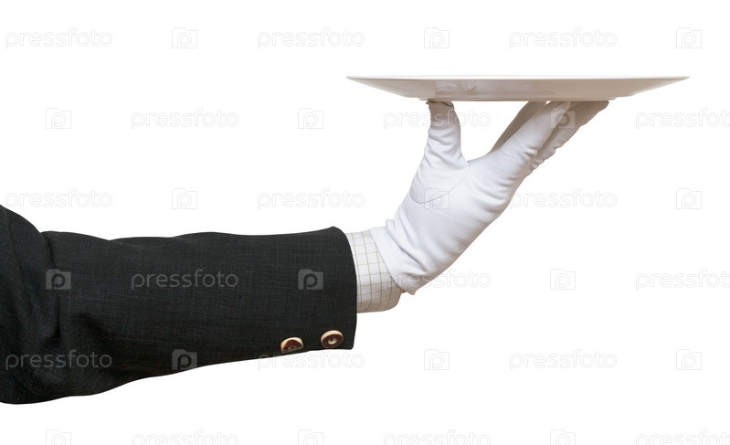 Рука в белой перчатке с черной тарелкой