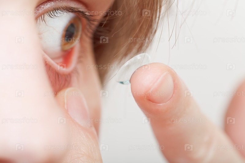 Женщина вставляет контактную линзу