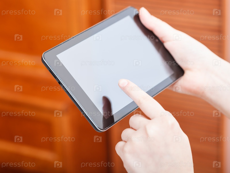 Палец касается экрана сенсорного утройства