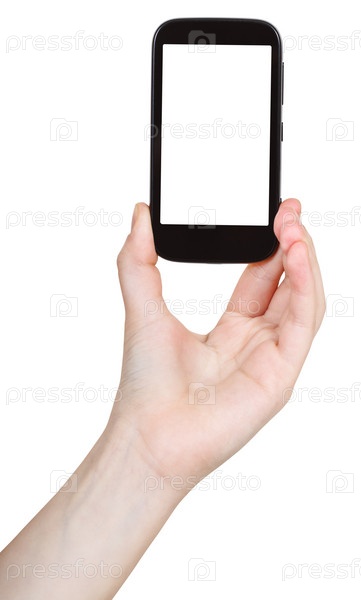Рука держит смартфон с вырезанным экраном