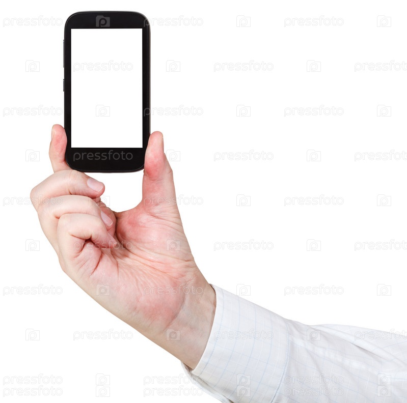 Рука держит смартфон с вырезанным экраном