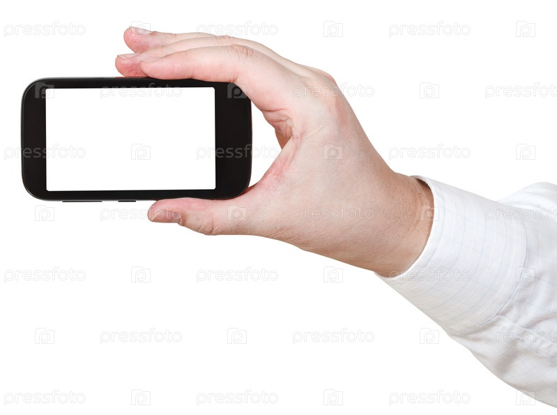 Рука держит смартфон с вырезанным экраном