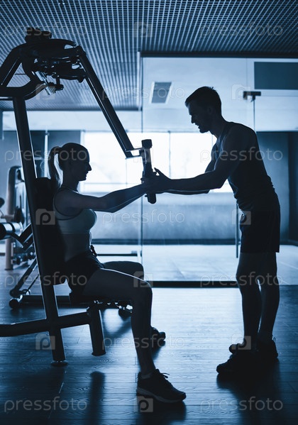 Тренер помогает девушке