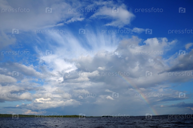 Радуга над озером в солнечный день