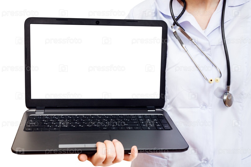 Медсестра держит ноутбук