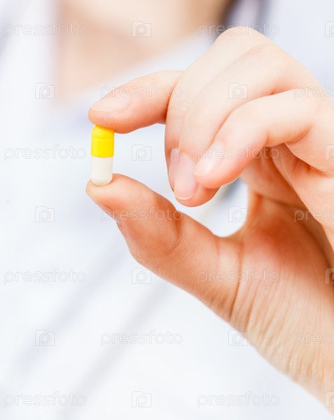 медсестра держит таблетку в пальцах