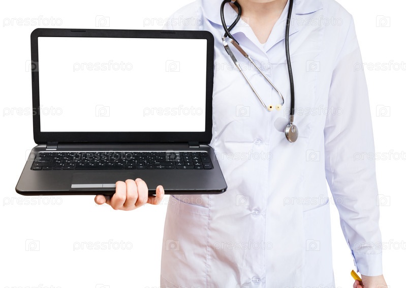 Медсестра держит ноутбук