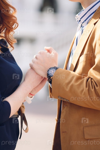 Свидание, пара держится за руки