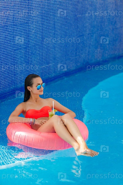 Девушка в бассеине с надувным кругом