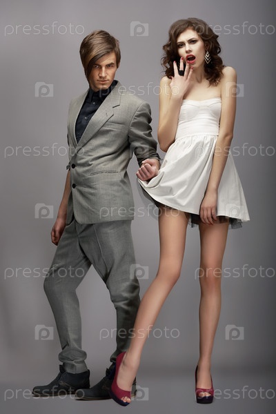 Модная пара позирует в студии