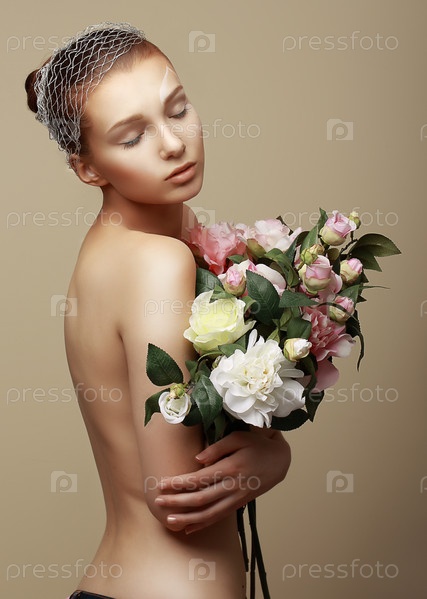 Девушка с букетом цветов