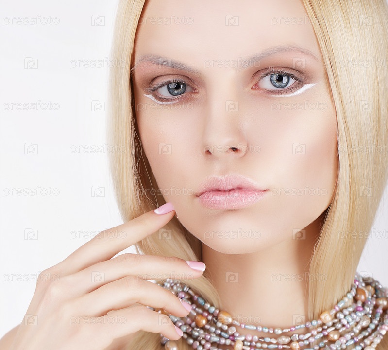 Блондинка касается лица