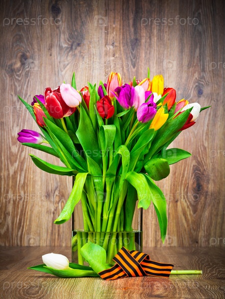 Тюльпаны на деревянном фоне