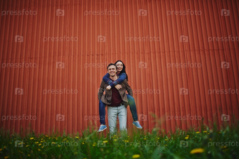 Мужчина держит женщина на спине