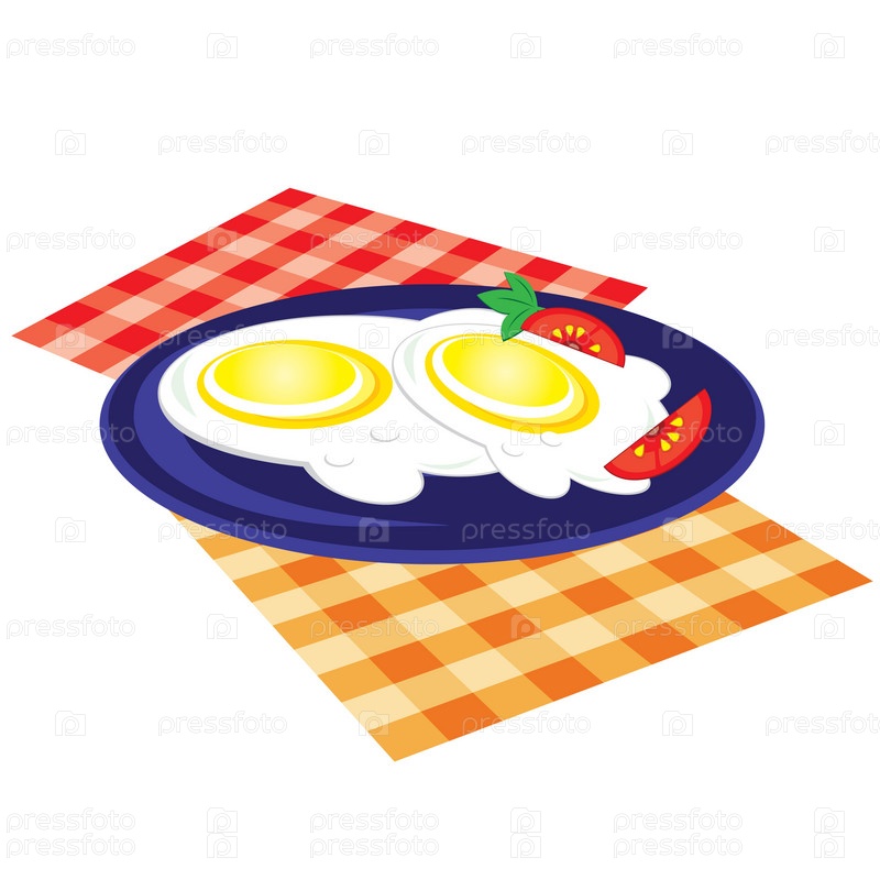 Яичница с помидорами на тарелке на белом фоне