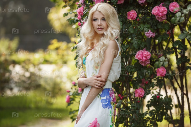 Блондинка на фоне шиповника
