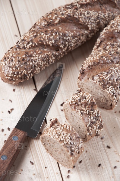 Свежий нарезанный багет на деревянном фоне