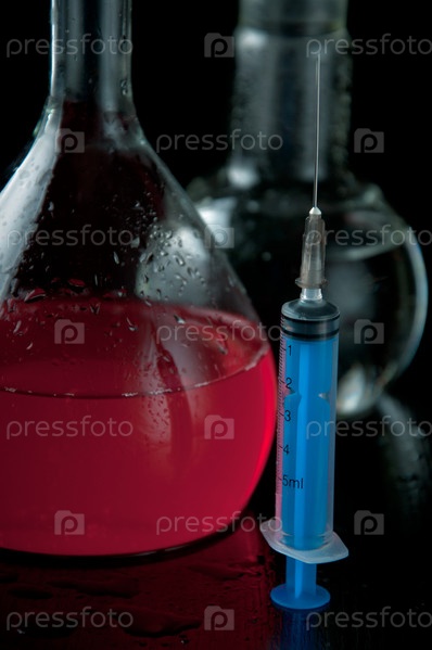 Лабораторные пробирки и шприц крупным планом