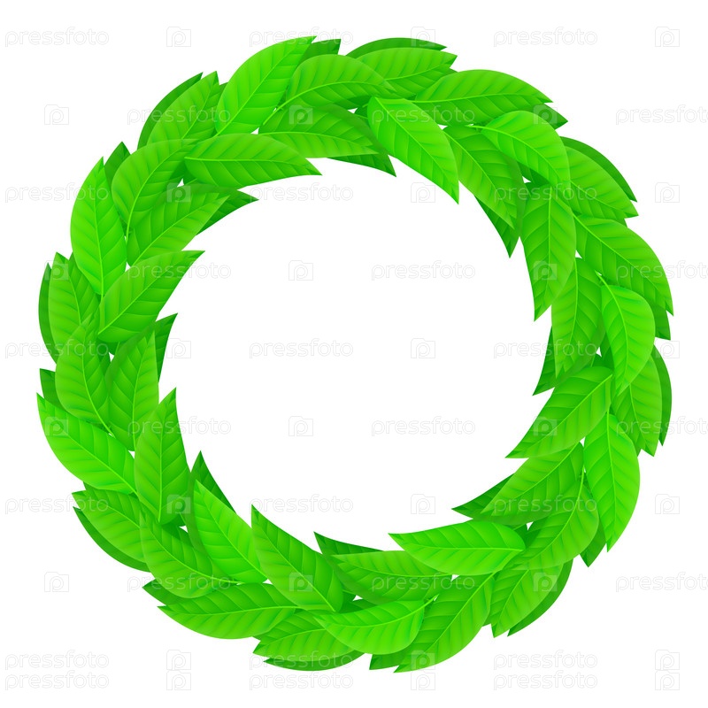 Венок из зеленых листьев на белом фоне